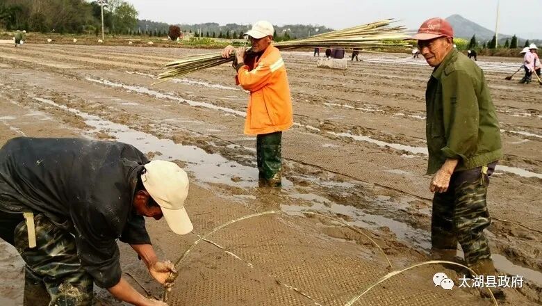 “膜铺好以后,两边要按紧按实,防止大风将膜吹起来,这个一定要注意了。这是前期的盖膜,盖好膜以后,要清沟,把这沟修通,把围沟也修通。”新仓镇农业综合服务中心农技员周旺根现场知道时说。