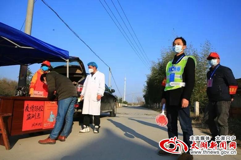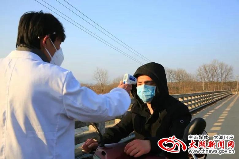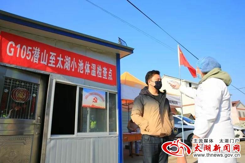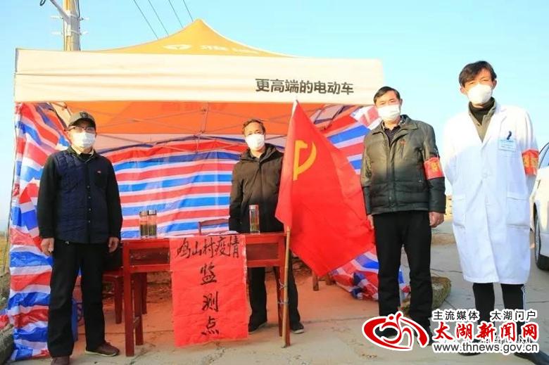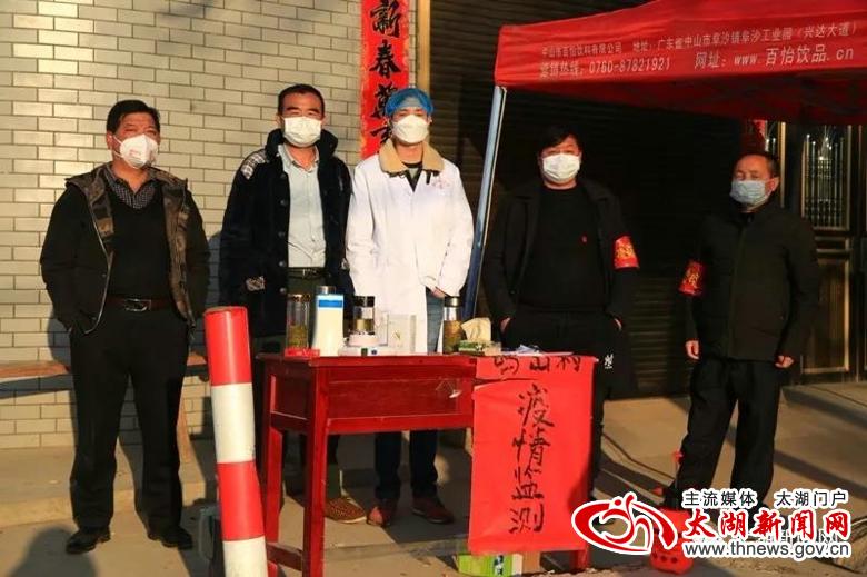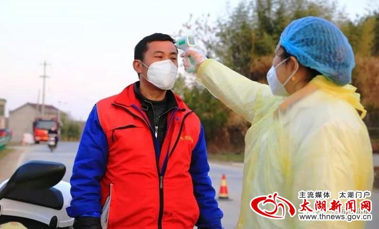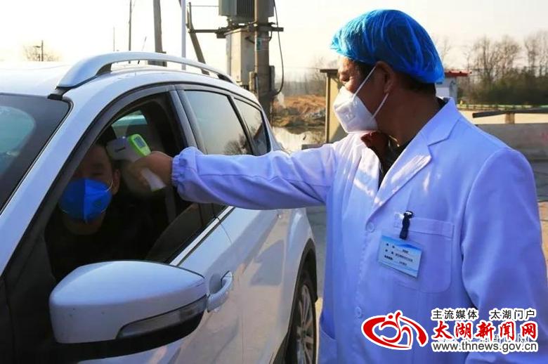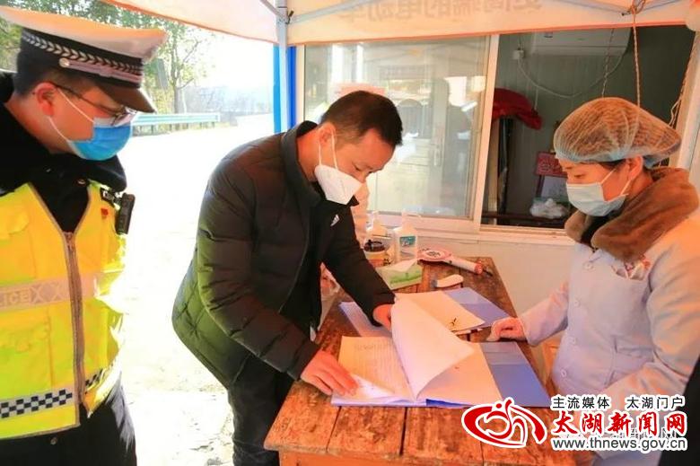 当记者来到太湖、潜山两县交界点小池镇白沙村疫情防控监测点时,只见公路路面被警戒桩从中间分隔成两条车道,戴着口罩,身穿警服、反光衣、白大褂的工作人员以及志愿者站在路中或路边,时刻关注着路上的情况。在临时搭起的监测点一旁,鲜红的党旗迎风飘扬,“临时党支部”的牌子格外醒目,党员身上佩戴的党徽熠熠生辉,附近的广播喇叭也在不间断播放着疫情防控基本知识。记者在监测点留意到,该点的记录台帐上列有工作时间表,记录着县公安、交运、镇政府和镇卫生院工作人员轮班工作的名单,每天24小时不间断对过往人员和车辆进行登记、检测,各个环节均有专人负责,信息登记齐全、准确,宣传教育耐心、到位,汇报情况及时、细致。在这个监测点,短短几分钟即有4辆车进出。车辆经过时,民警举手示意停车,医护人员马上上前对车内所有人员进行测温,接着问询、登记,最后对人员进行简要的防疫知识宣传,所有经过人员均积极配合检查。截至15:48记者离开时,当天经由此监测点符合相关手续进入我县的车辆105台次,人员200余人次,所有人员均进行了详细的信息登记和体温测量,对于不符合手续的人员和车辆一律劝返。