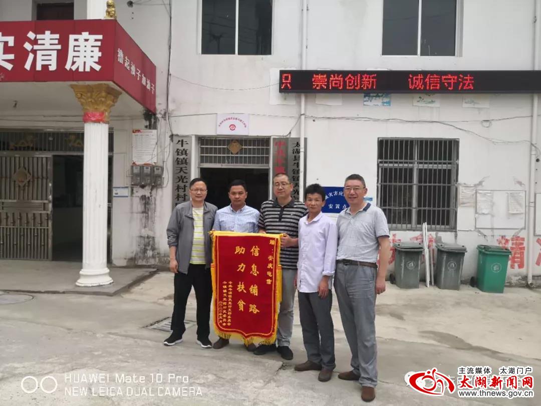 近日,牛镇镇天光村村委会向安庆电信太湖分公司赠送“信息铺路,助力扶贫”锦旗。