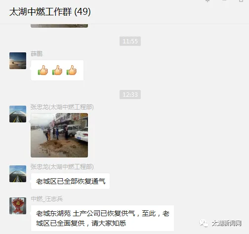 这次24小时的快速突击抢险,太湖中燃人始终秉承着“气聚人和 造福社会”的初心使命,在险情面前冲在一线,克服重重阻碍,想用户所想,急用户所急,在恶劣抢修环境中最大程度保障了居民用气,充分展示了中国燃气的专业和实力,更体现了中国燃气的社会责任和担当。太湖中燃将一如既往,确保太湖全县持续平稳供气。