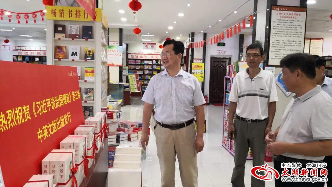 7月17日上午,县委常委、宣传部长李加生到县新华书店调研《习近平谈治国理政》(第三卷)发行情况。县委宣传部相关负责同志陪同。