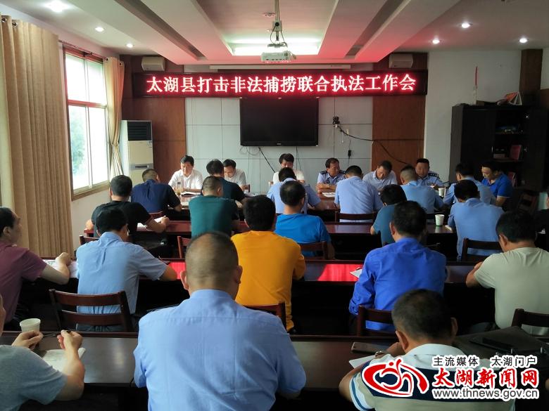 7月19日,我县召开打击非法捕捞联合执法工作会。我县泊湖、花亭湖禁捕联合执法队全体成员参加会议。