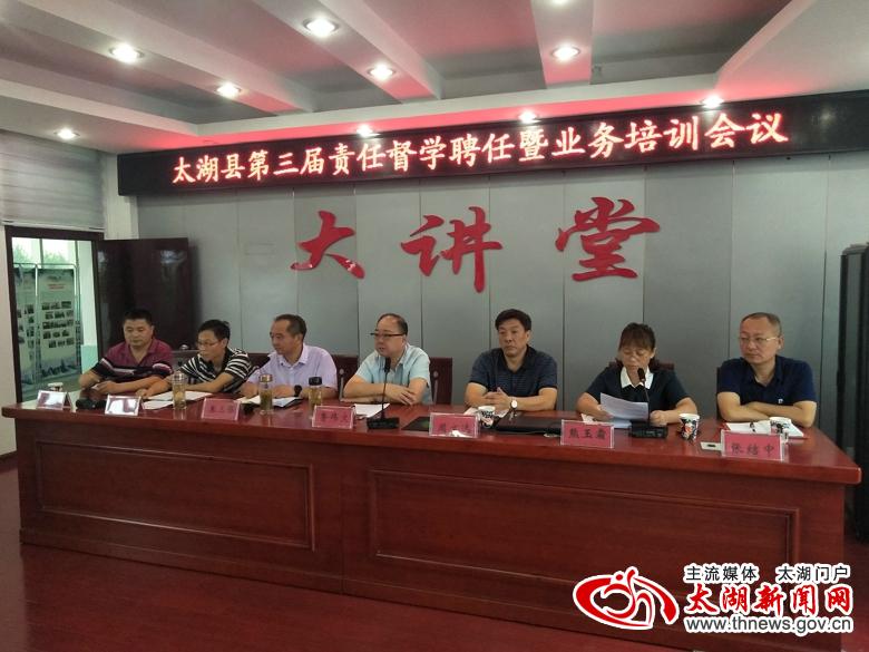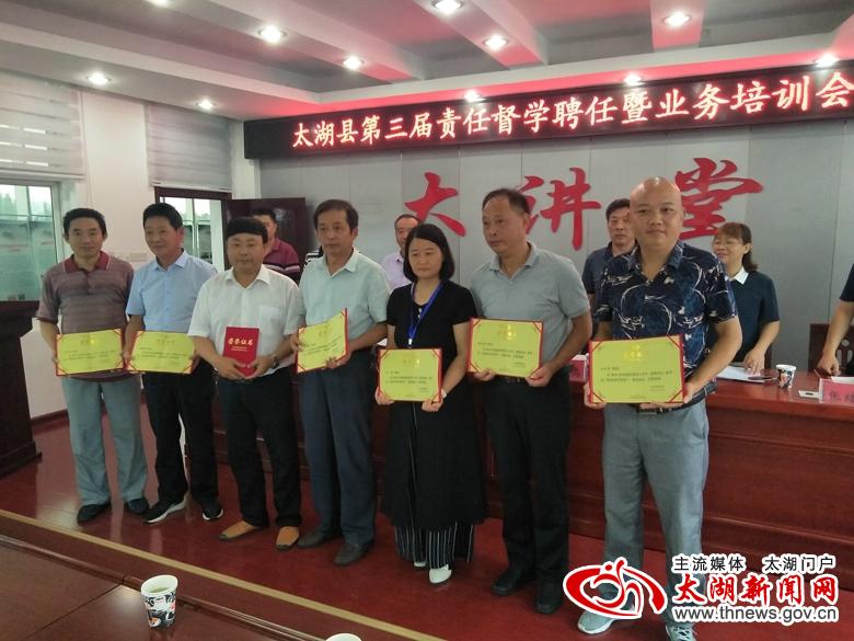 会上,对优秀责任督学进行了表彰,相关责任区督学在会上做交流发言。会议宣读了《关于聘任太湖县第三届责任督学的通知》,新一届督学进行了集体入职宣誓。省政府督学、市专职督学周文选在会上做专题督导业务培训讲座。(苏勇)