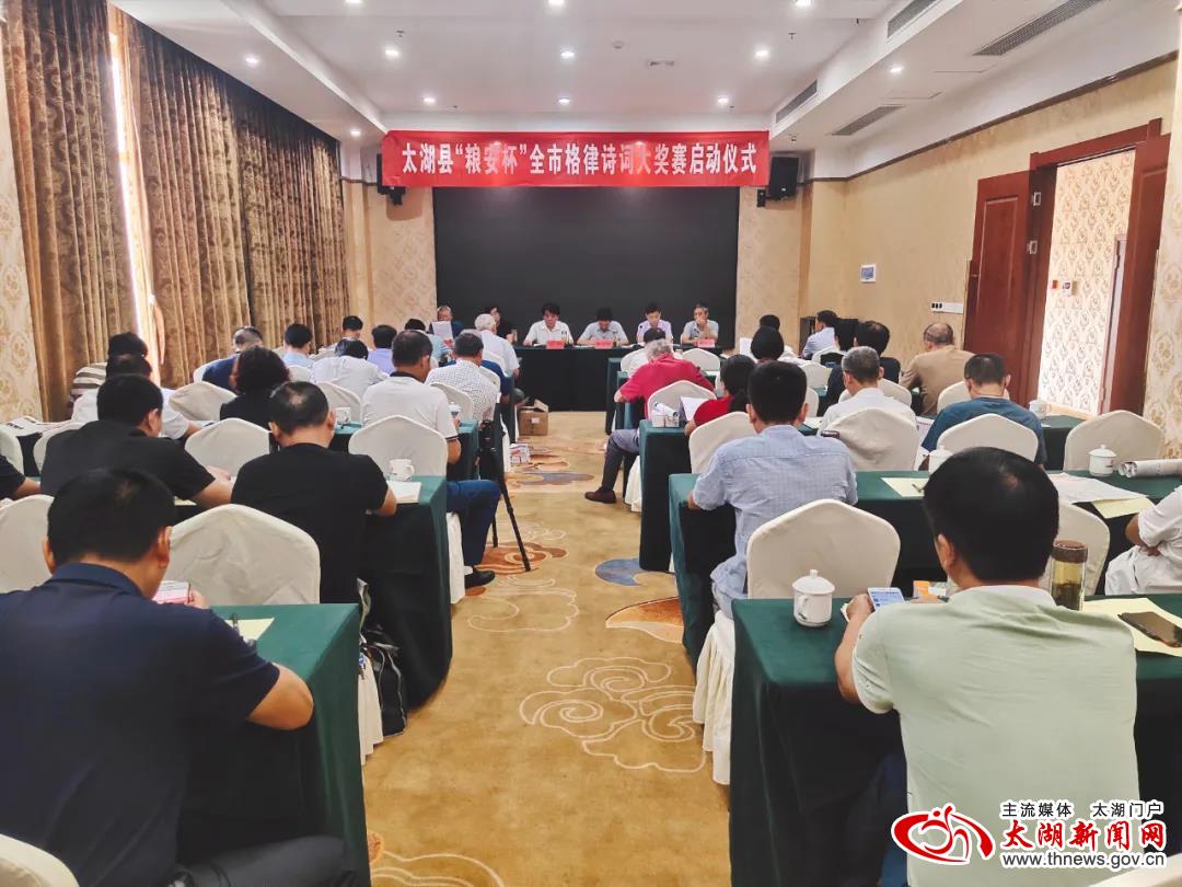 8月7日上午,太湖县“粮安杯”全市格律诗词大奖赛启动仪式在我县举行。据了解,本次大赛由县商务局(粮食和物资储备局)主办,县农业农村局协办,县诗词书画学会承办,以太湖县在新中国成立以来,粮食安全、粮食生产、粮食储备、爱粮节粮、科学种粮为主旋律,在2020年7月15日至9月25日期间,面向安庆市各县区广大诗词爱好者征稿。(刘鑫)