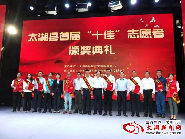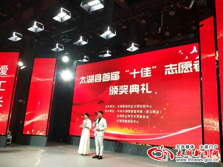 为进一步弘扬志愿服务精神,积极构建具有太湖特色的新时代文明实践志愿服务体系,努力营造人人关注志愿者、人人尊重志愿者、人人争做志愿者的良好社会氛围,9月29日晚,我县首届“十佳”志愿者颁奖典礼在县融媒体中心演播大厅举行。县领导李加生、刘存磊、张超宜、李传萍、占卓夫受邀出席颁奖典礼。