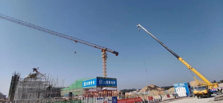 目前,工地上有工人236人,安排了塔吊、汽车吊、挖掘机、铲车等机械14台,分为两个结构班组,全力以赴决战四季度!