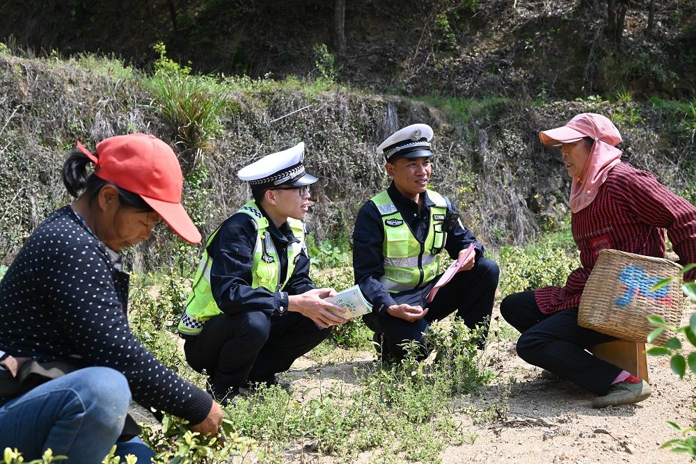 在田垄旁、茶树间,民警利用茶农休息时间,通过发放宣传资料,悬挂宣传横幅等形式,结合典型案例,面对面向茶农、茶厂茶园负责人讲解交通安全常识,引导大家自觉遵守交通法规,提高安全意识,确保采茶往返途中出行安全。民警还鼓励茶农们把交通安全知识传给身边的亲朋好友,进一步扩大宣传效果,推进交通安全宣传“最后一公里”。