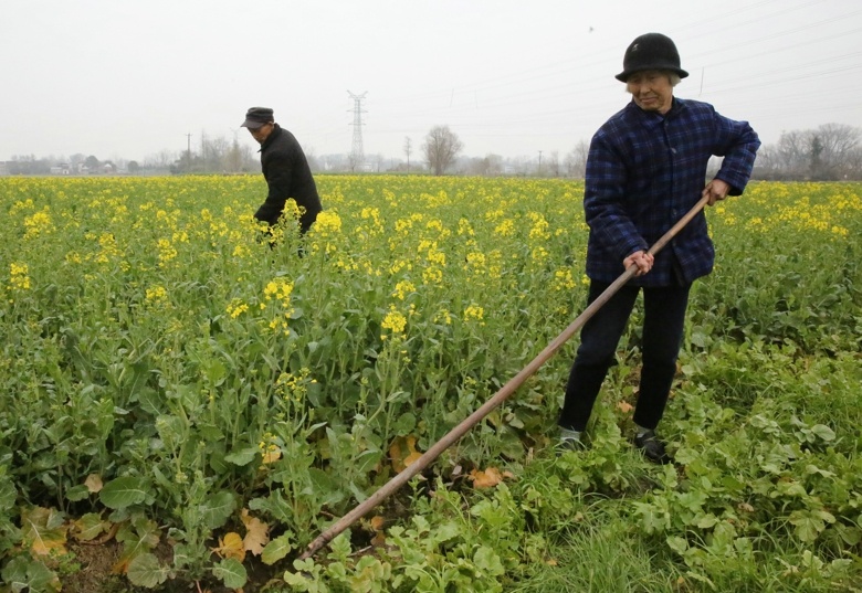 太湖县新仓镇鸣山村鲁家小屋年过古稀的鲁志平、郝金霞夫妇正在油菜田里清沟沥水。