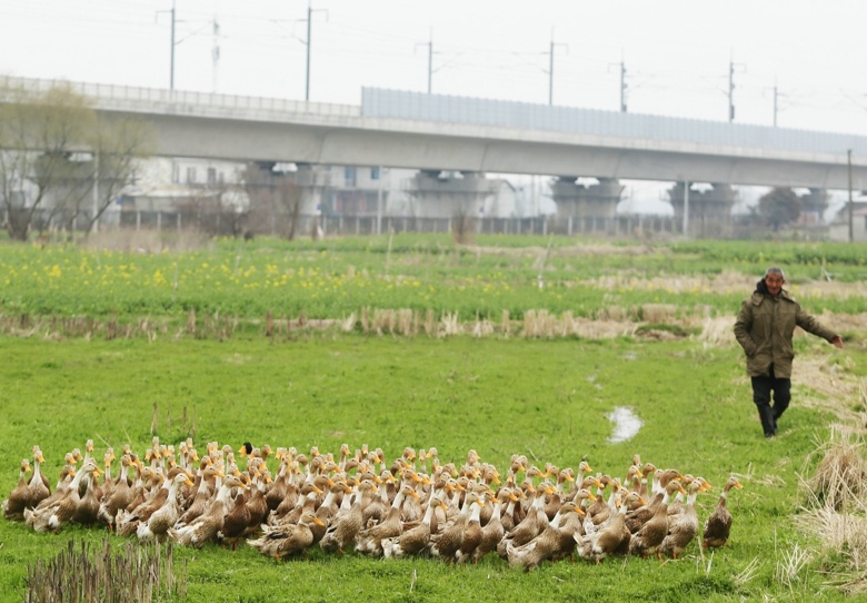 太湖县新仓镇同心村村民吕克盛勤劳养鸭,增收致富。