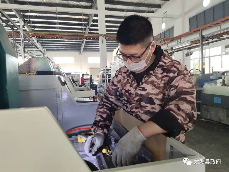 机电维修员陶伟伟告诉记者,由于新冠肺炎,今年这个年比较特殊,在家没什么事,看了一下太湖达名欣这边正在招人,就在网上联系了公司人事部,过两天就来这边上班了,这边薪资待遇不错,还能就近照顾家里身体不好的老人,家里很多事情方便多了,现在也不想往外跑了。