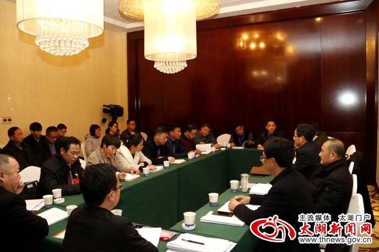 12月31日下午,县委书记程志翔来到县十六届人大四次会议寺前代表团,与代表们面对面交流讨论,共商太湖发展大计,并向代表们提前致以新年的问候。