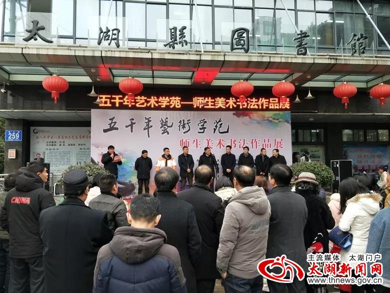 1月12日,五千年艺术学苑美术书法作品展在县图书馆举行,县人大常委会副主任毛胜发、县政协副主席占卓夫出席开幕式。