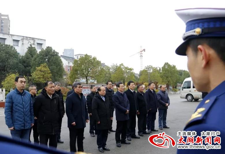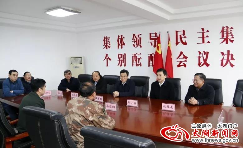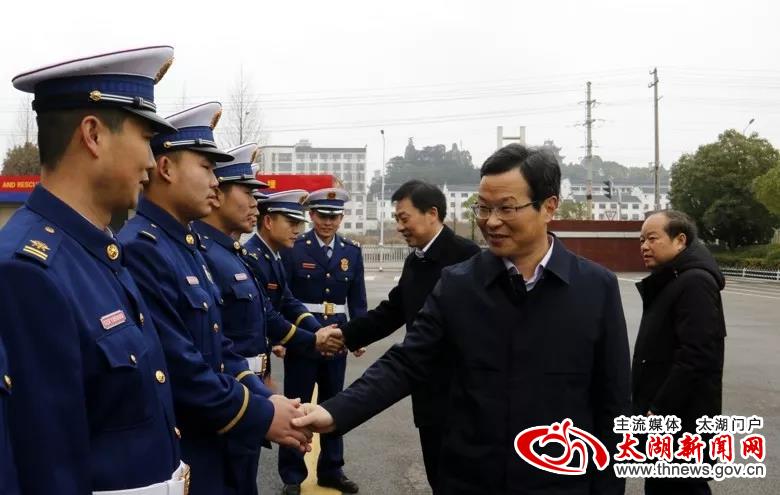 在县武警中队,县委书记程志翔说,过去一年,太湖县经济社会发展势头良好,社会大局稳定,人民生活水平迈上了新台阶。我们即将顺利摘掉35年的“贫困帽”,2020年将与全国同步进入全面小康社会。这些成绩的取得,离不开武警官兵的辛勤努力,党和政府感谢你们,是你们用奉献守卫了太湖的一方平安、保卫了老百姓生活的安宁。新的一年,希望你们继续发扬革命精神,加强学习,刻苦训练,恪尽职守,勤勉工作,牢记习近平总书记的训令训词,“坚决听党指挥,加快建设发展,聚力练兵备战,坚持依法从严”,扎实做好各项工作,为太湖经济社会发展、人民群众安宁幸福作出新的更大贡献。