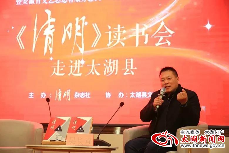 赵宏兴在致辞中说,《清明》读书会走进太湖,与太湖作家共同分享读书的盛宴,享受新春佳节的气氛,畅导大家过一个健康的春节、文化的春节、悦读的春节。