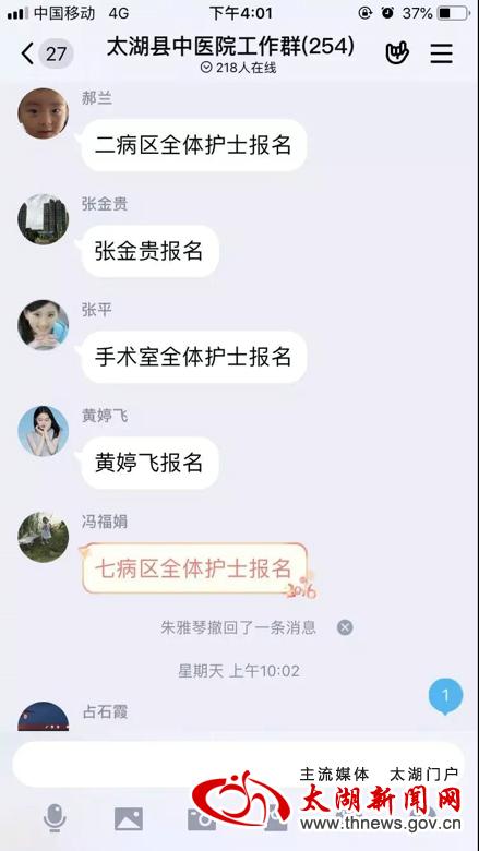 1月26日,县中医院党支部对全院党员干部发出倡议书,要求全院上下主动参与防控工作,不忘医者使命,积极担当作为,听从组织号召,站在党和人民需要的地方,为疫情防控工作贡献力量。倡议书发出后,不到两个小时,报名者在两个工作群满屏“刷屏”,党员说“无条件上”普通职工也纷纷请战,在外进修、规培的人员都参与了进来。