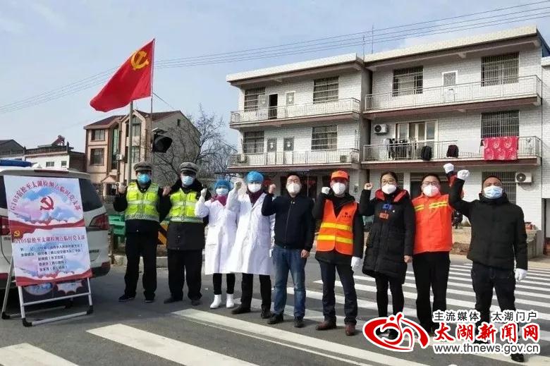 在当前疫情防控的严峻斗争中,太湖县各级党组织和广大党员干部坚决贯彻落实党中央和省、市、县决策部署,坚定信心、冲锋在前,团结带领广大人民群众扎实做好疫情防控工作。在这场没有硝烟的战斗中,一个个战斗堡垒巍然矗立,一名名党员干部挺身而出,鲜红的党旗在疫情防控一线高高飘扬,成为这个新春时节感人的风景线。