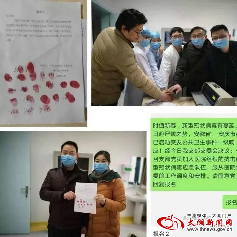 1月26日,医院七个党支部主动递交请战书,全体党员签名按上红手印。医院全体党员坚定承诺:“作为党员和医务工作者,我们愿意在危险时刻,冲锋到疫情防控最前线,无条件服从医院安排,不畏风险、不计回报,为保障人民群众生命安全和身体健康,贡献自己的力量。”急诊科党员的抗“疫”口号是:“看我的、跟我上、冲在前!”承诺是:“听党话、跟党走、不畏死,随时准备在这次战斗中牺牲一切!”