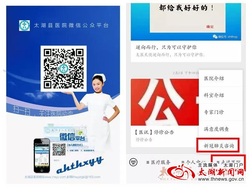 咨询者只需在微信上关注“太湖县人民医院”微信公众号,在底部菜单找到“走进医院”选项,点击“新冠肺炎”咨询模块,按提示填写、上传相关病情资料,就可以随时向专业医生进行网上咨询,等待医生回复。