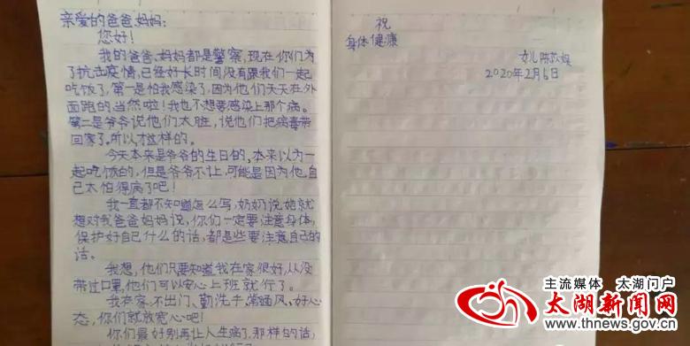 作为陈子风、吴燕二人唯一的女儿,今年10岁的陈苡娱在这段特殊的日子里也表现得特别懂事,每天她都会早睡早起,按时完成寒假作业,还帮爷爷奶奶分担家务,为了让爸爸妈妈放心,他在日记里写道:我在家,不出门、勤洗手,常通风,好心态,你们就放宽心吧!你们最好别再让人生病了,那样的话,只要把前面得病的人治好就行了。你们辛苦了!