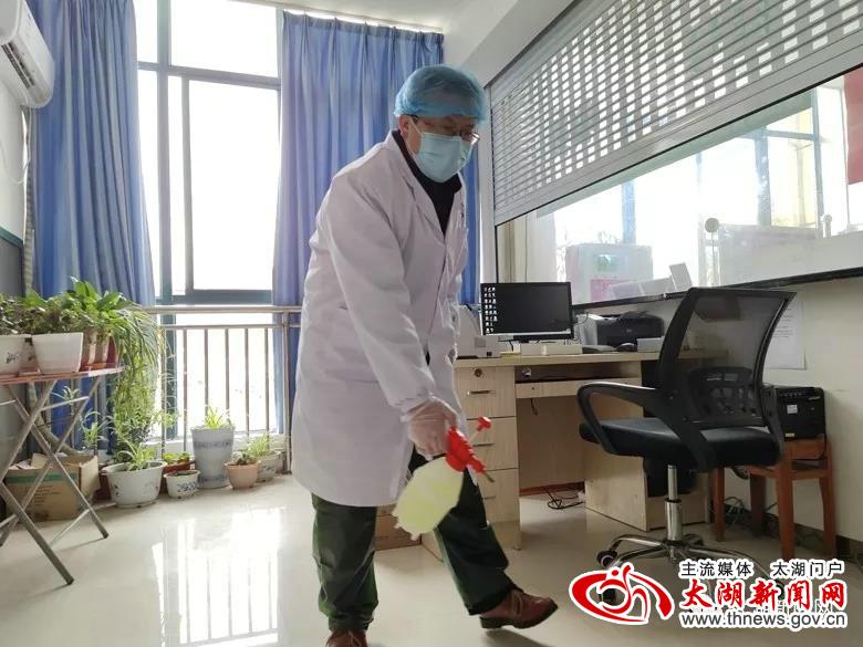 尽管工作繁忙,但他每天带头进行消杀工作,做到消毒到每一个办公室,每一个角落。职工说院长你还做这事,他总说,物业人员只消杀走廊等外围地方,会留死角,诊疗环境卫生了,你们和患者安全就多一分,病毒就少一分。一圈下来他常常是拖着疲劳的身子,一身汗回到办公室,接着还要做其他工作。