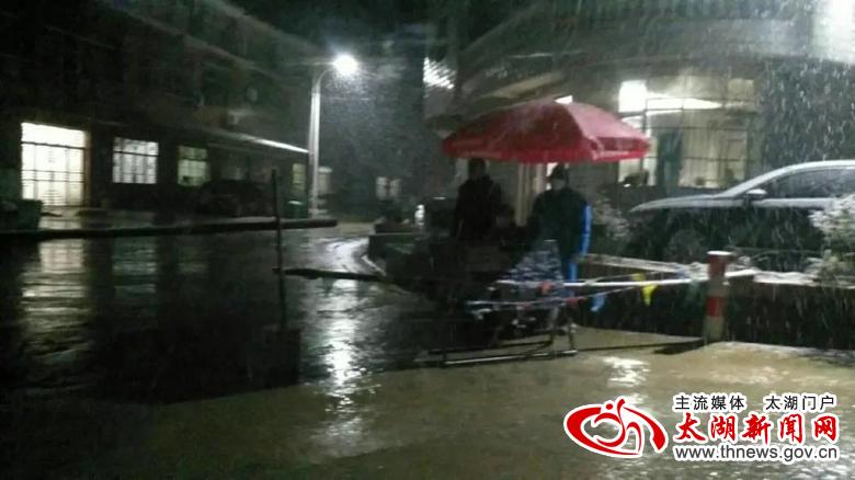下午3:58分,和镇指挥部办公室的小伙伴们统计完相关数据后,书记打电话来叫准备点口罩一起去透析患者家中。打开办公室的门一看,哦!下雪了!