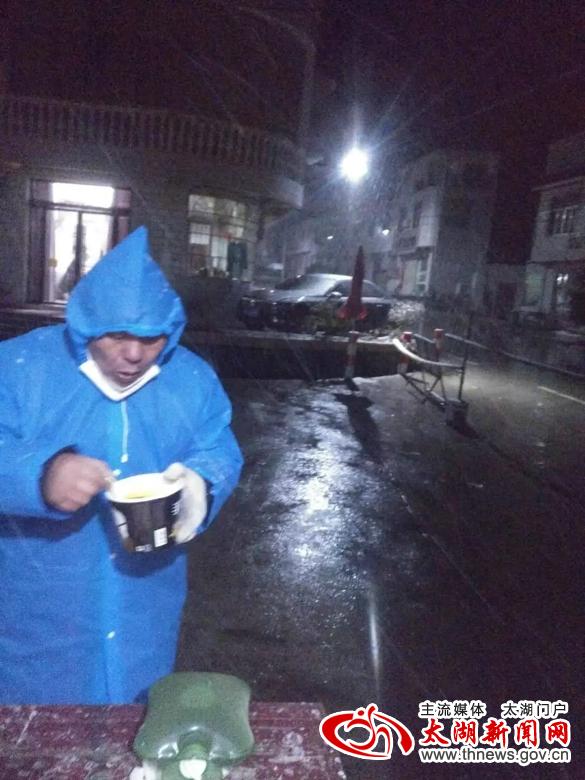 我们驱车回镇,已是下午5点35分,雪一直下。到了三村村卡点,我们下车和卡点的工作人员细聊了起来。“卡点的工作,大家都很支持,车辆、行人越来越少,我们的付出都是值得的”,三村村临时党支部支部委员杨春龙边吃着泡面边告诉我们,话语中难掩他激动的心情。“大家辛苦,晚上要注意保暖,记得穿棉鞋”。书记上车还在叮咛刚才说过的话。