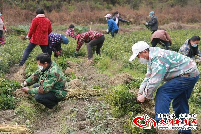 2月22日,天晴日暖,汤泉乡侯六村扶贫产业基地——上畈沟茶苗园里铺开了有序的劳动画卷,几十个男男女女正在采茶秧,100株茶秧一扎,男劳力挑着扎好捆的茶苗从田里往公路上运,这是汤泉乡侯六村绿林农业农民专业合作社春节后首次组织贫困户复工,也是汤泉乡疫情防控期间首个复工的村级产业基地。