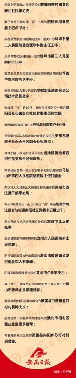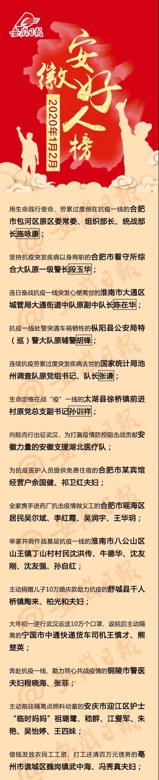 经各地、省直有关单位推荐和省文明办评议,36组(人)在抗疫一线表现突出的先进典型入选2020年1-2月份“安徽好人”。