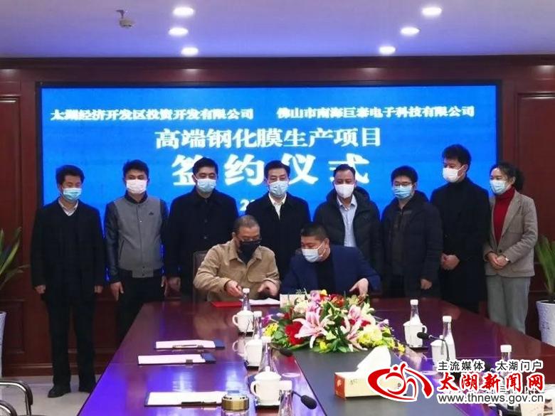 朱小兵祝贺项目正式签约,要求经开区管委会、招商中心等相关部门要积极与企业做好对接,制定入区工作流程图,及时跟踪服务到位,确保项目早日建成投产、发挥效益。赵俊杰也就经开区管委会各有关部门做好项目建设保障工作提出了要求。据悉,佛山市南海巨泰电子科技有限公司是一家专业从事电子产品钢化膜的研发、生产和销售的企业,为拓展业务范围,拟在太湖设立注册新公司,投资建设电子产品高端钢化膜生产项目,项目分三期实施,需租赁开发区标准化厂房约18000平方米,2020年3月启动一期建设,2020年6完成建设;计划2020年7月启动二期建设。全部建设项目于2022年底前完成。