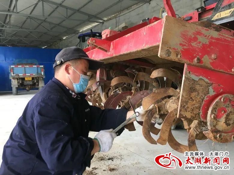 3月12日,在晋熙镇晋湖村种粮大户李晓来家的后院内,拖拉机、旋耕机、打捆机等多种备战春耕的农业机械有序排放,镇农业综合服务中心选派的农机维修人员正在对他家的旋耕机进行检修保养,不到半小时,旋耕机原有的机件故障就得到了排除。