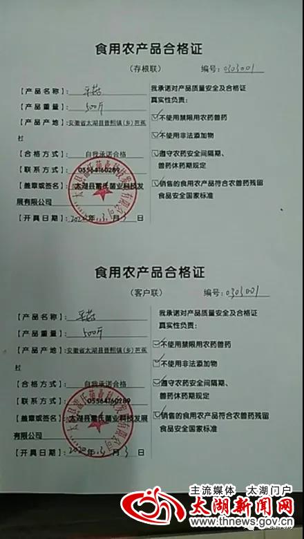 据了解,我县将通过推行食用农产品合格证制度,进一步健全农产品质量安全信用体系建设,建立以食用农产品质量合格证明为核心内容的产地准出管理与市场准入管理衔接机制,实现食用农产品从农田到餐桌全程质量安全可追溯,形成生产者自律和政府监管相结合的农产品质量安全管理新格局,为推动农业高质量发展、促进乡村振兴提供有力支撑。截止目前,全县已开具食用农产品合格证 182 张, 5批次,涉及食用农产品6.89吨。(范霞 阳周华)