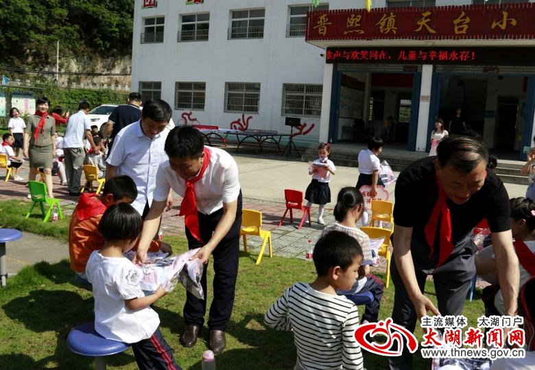 6月1日,县委常委、组织部长、统战部长阮波率队,来到晋熙镇天台小学,看望慰问少年儿童,帮他们点亮“微心愿”,并与他们一起欢度“六一”国际儿童节。县人大常委副主任毛胜发,县政府副县长李传萍,县直有关部门负责人参加慰问。