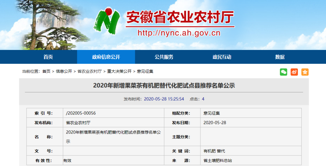 2020年新增果菜茶有机肥替代化肥试点县推荐名单公示
