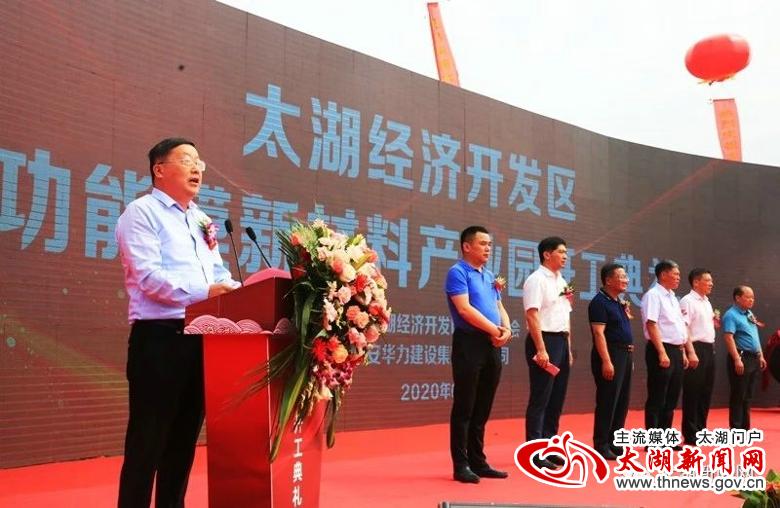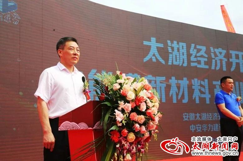 6月8日上午,县经济开发区功能膜新材料产业园项目举行开工仪式。县长朱小兵出席仪式并宣布项目正式开工,与安徽省华力控股有限公司董事长常前仓共同启动水晶球。