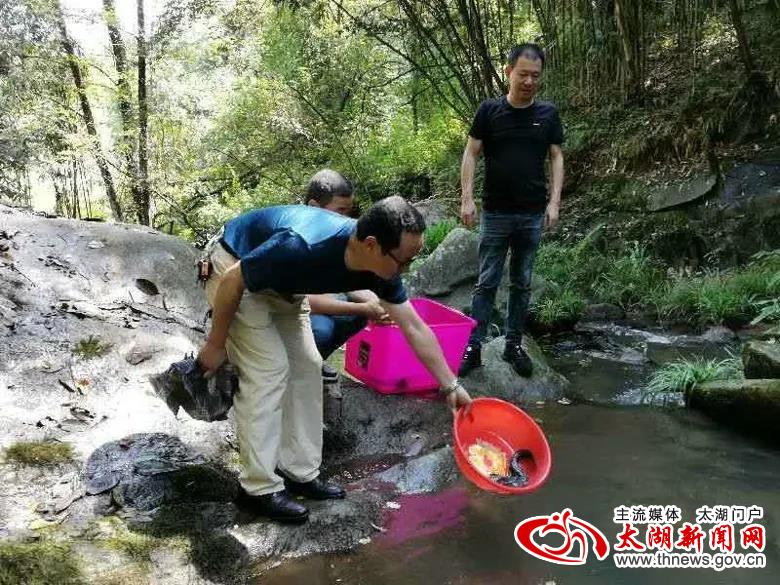 大鲵又名娃娃鱼,是我国二级重点保护野生动物,日前,国家市场监管总局、农业农村部、国家林草局联合发布的《关于禁止野生动物交易的公告》,明确提出新冠肺炎疫情期间,禁止饲养繁育野生动物对外扩散和转运贩卖。根据野生动物保护法的相关规定,执法部门对当事人无证养殖的45的条大鲵予以没收,并将查获的这45条大鲵在花亭湖、汤泉、天华、城西、晋熙等地进行放生处置,让他们重回大自然。(梅大宋)