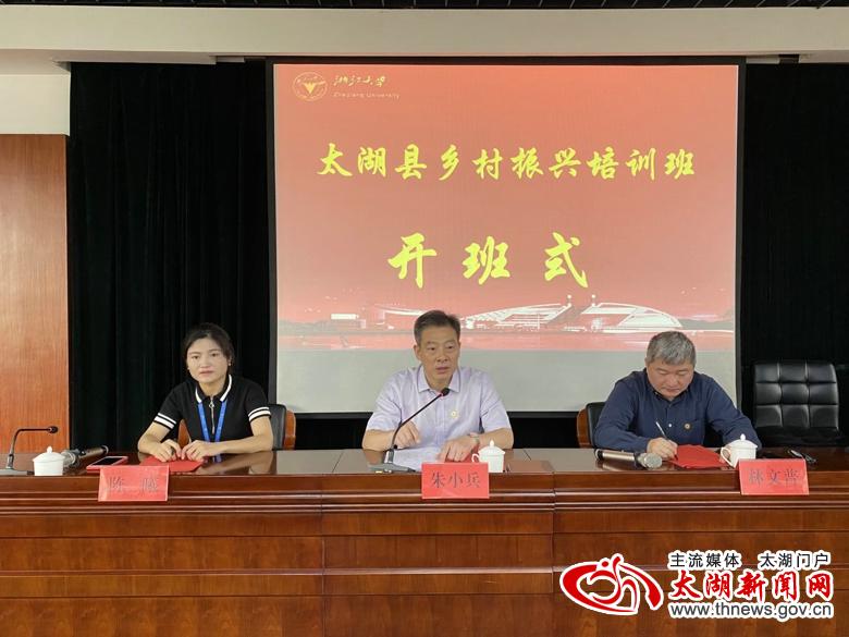 在开班式上,朱小兵对学员提出了三点要求。一是提高认识,增强学习自觉。举办此次培训班,是学习贯彻习近平总书记考察安徽和在合肥主持召开扎实推进长三角一体化发展座谈会重要讲话精神的需要,使大家更深领会和贯彻落实习近平总书记的讲话精神;是推进太湖高质量发展的需要,立足太湖、面向未来,必须跳出太湖看太湖,必须学习浙江等先发地区的先进经验、学理论、学事例;是提高我县干部队伍能力素质的需要,进一步解放我县干部队伍思想,增强开放意识和创新理念,提升担当尽责的魄力。二是积极用心用脑,学思践悟,提高学习成效。此次培训,浙江大学精心设置课程,内容丰富。“学而不思则罔,思而不学则殆”,大家要认真聆听专家教授讲课,找准差距、加强思考,认真总结分析先进典型背后的成功经验,总结提炼可供今后工作借鉴的思路启示,并转化推进工作落实的具体行动,为我县的乡村振兴工作部好局、谋好篇,不断增进人民福祉。三是严守纪律规定,端正学习态度。要转换身份,全身心投入学习培训,自觉克服工作和生活上的困难,集中心思精力,加强学习交流,严格遵守学习纪律,确保培训学习取得实效。