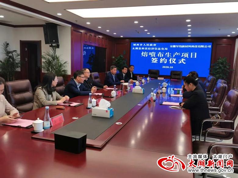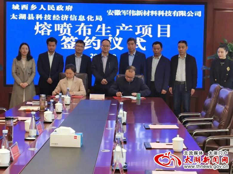 仪式上,城西乡相关负责同志与安徽军伟新材料科技有限公司负责人签署了熔喷布生产项目合作协议。熔喷布生产项目是县科经信局与城西乡共同招商引资项目,落户城西乡,总投资9000万元,项目建成后年产99#熔喷布1500万吨,年产值4500万元。