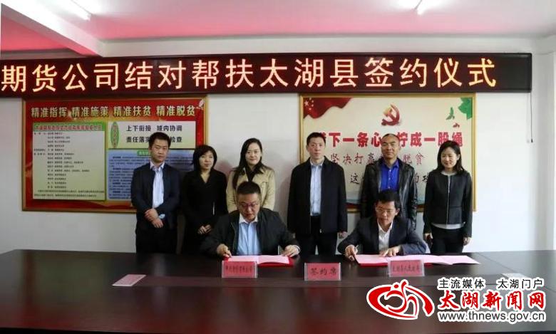 10月29日上午,期货公司结对帮扶太湖县签约仪式在县扶贫办会议室举行,中衍期货有限公司、浙江新世纪期货有限公司、中粮期货有限公司等3家公司现场与我县签订了帮扶协议。