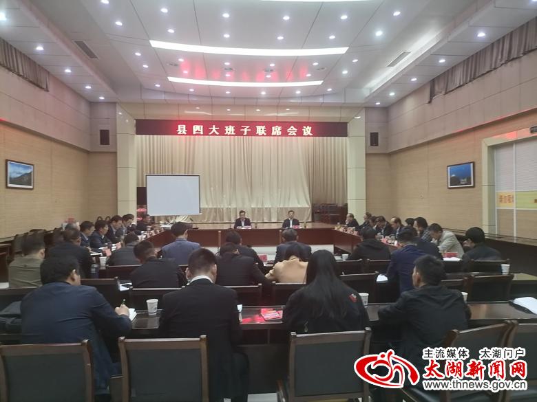 11月4日,县四大班子联席会议在县政府大会堂召开,县领导程志翔、朱小兵、张达华、赵福南、方勇、黄永忠、赵俊杰、董剑平、殷跃平、刘存磊等出席会议。