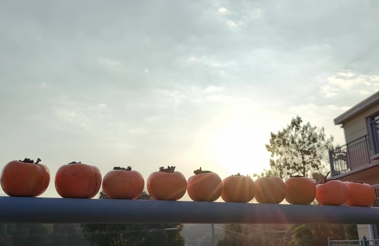 在大晴的天气将未软的柿子采摘下来晒做柿子饼,软软糯糯又是一番别有的风味。